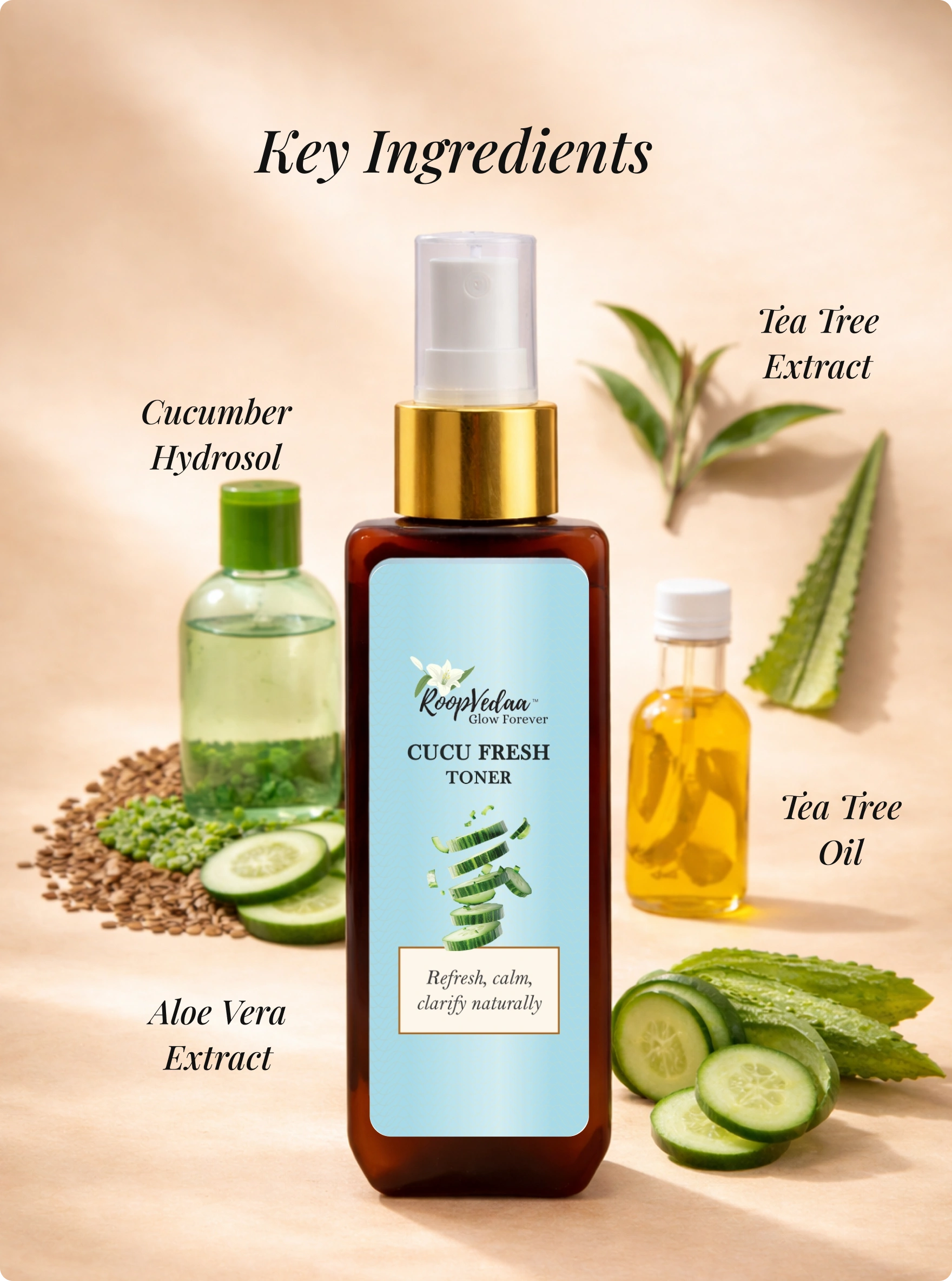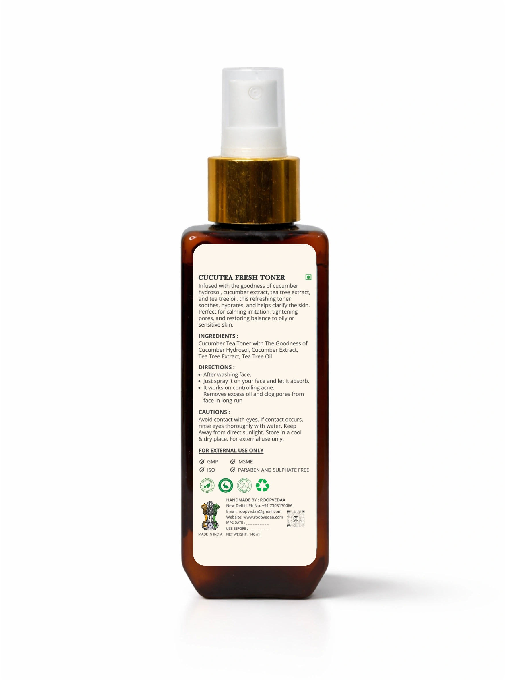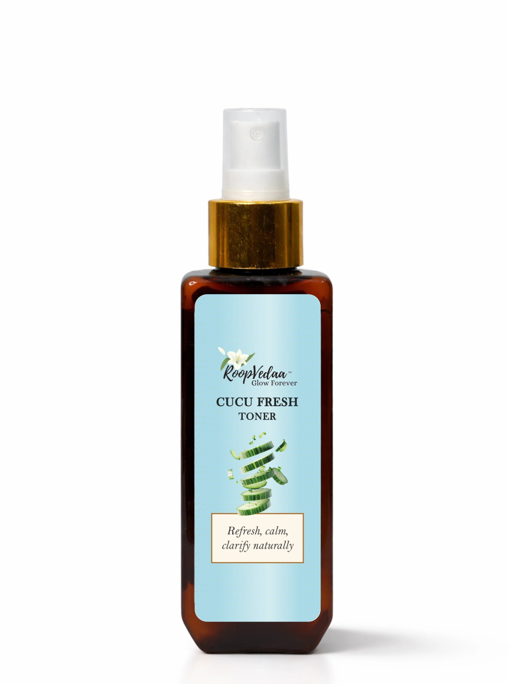 Cucu Fresh Toner is a refreshing facial toner formulated to cleanse residual impurities, tighten pores, and rebalance the skin after cleansing. Infused with botanical extracts, this toner helps refresh tired skin, controls excess oil, and prepares the skin for better absorption of serums and moisturisers.