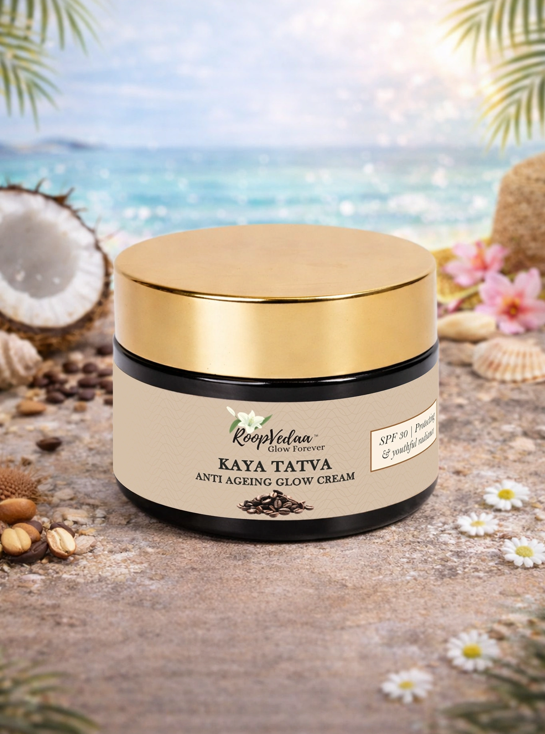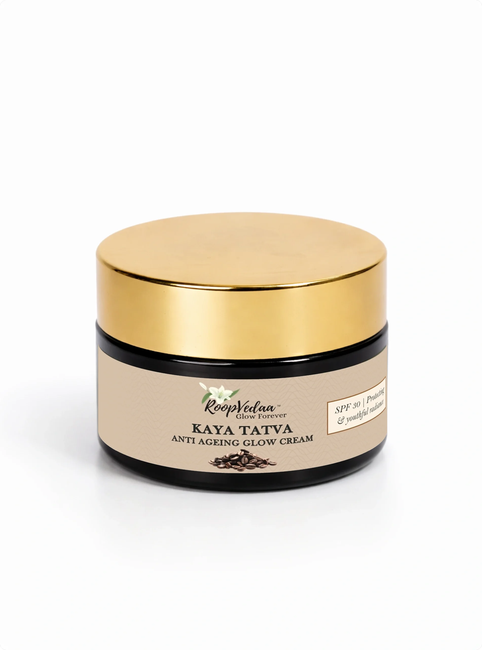 Kaya Tatva Anti Ageing Glow Cream protect and rejuvenate your skin with this Ayurvedic-inspired cream. Enriched with natural botanicals like Rosehip, Gotu Kola, and Sandalwood, it helps reduce fine lines, improves elasticity, and restores a youthful glow. SPF shields skin from sun damage while nourishing and maintaining a radiant, healthy complexion—perfect for daily ritual care.