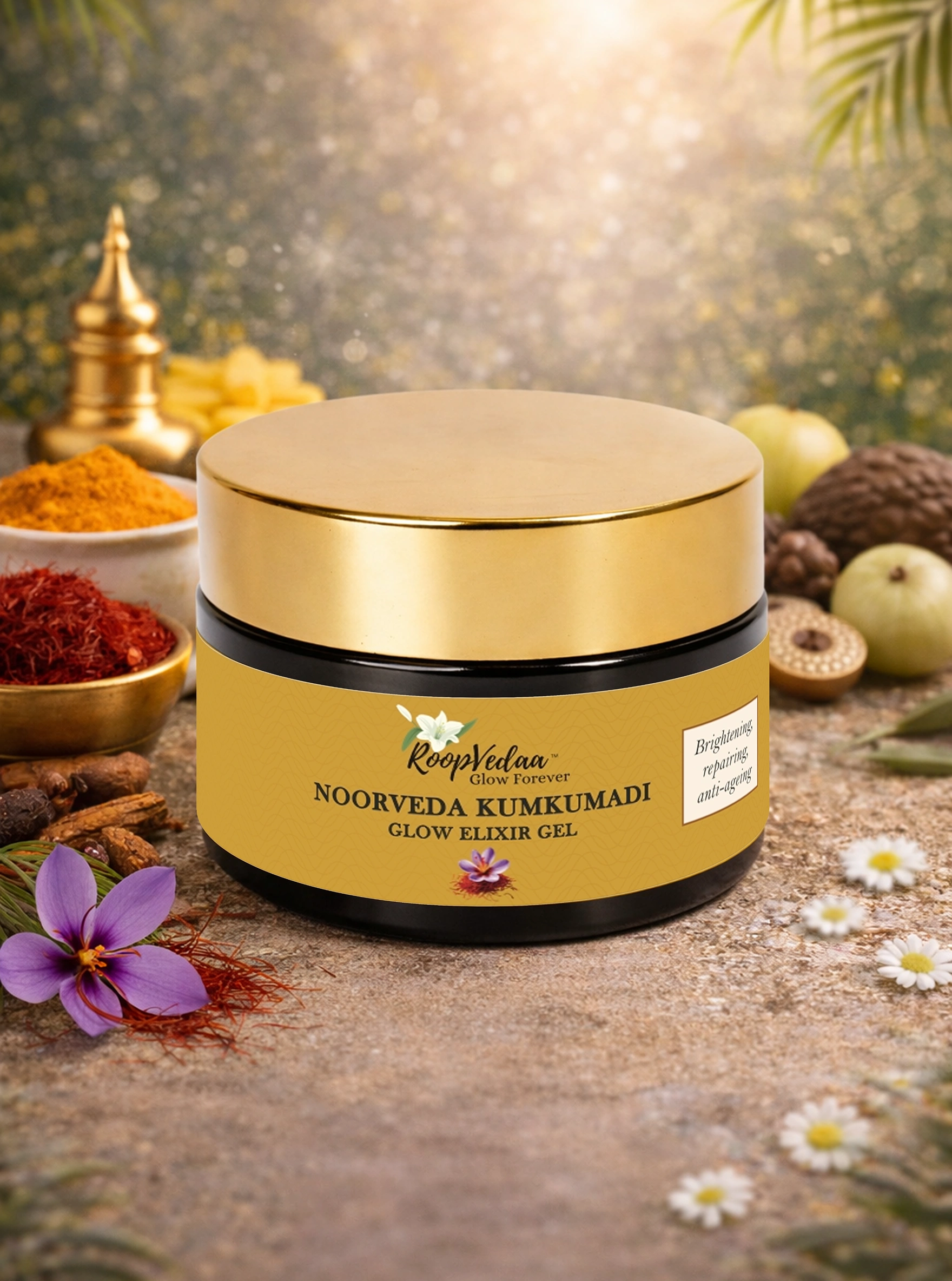 Noorveda Kumkumadi Glow Elixir Gel is a lightweight facial gel formulated to support skin nourishment and glow using traditional kumkumadi-based botanicals. Crafted with floral hydrosols, plant extracts, and kumkumadi oil, this gel is designed for gentle daily use, especially at night. Intended for external use only, it fits into a minimal skincare routine focused on skin comfort and radiance. Supports natural skin clarity and helps minimize uneven pigmentation with Ayurvedic botanicals.