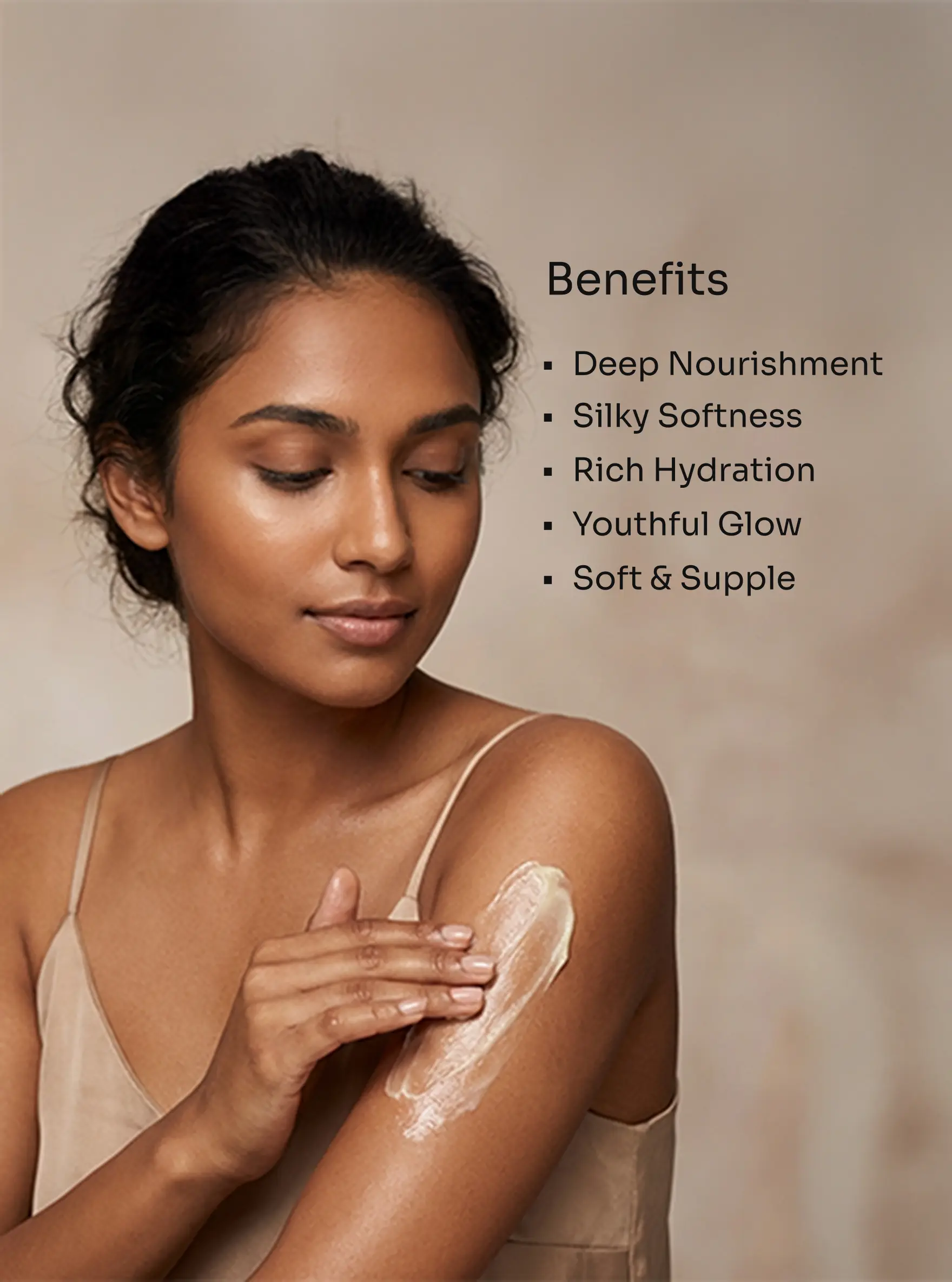 This Shea Butter Body Butter is a deeply nourishing and moisturizing formulation designed to restore skin softness, improve elasticity, and strengthen the skin’s natural barrier. Enriched with rich plant-based oils and herbal extracts, it helps combat dryness, especially during colder months. Regular use leaves the skin soft, supple, hydrated, and well-nourished.