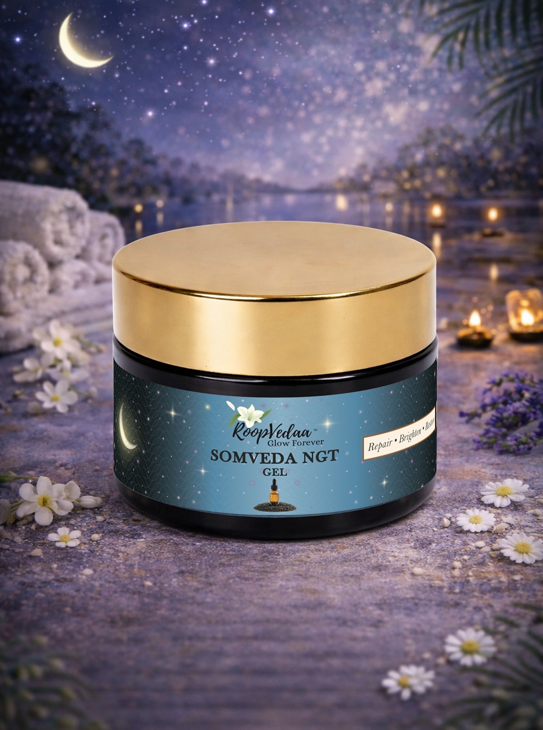 Somveda NGT Gel Revitalize your skin while you sleep with this lightweight, plant-powered night gel. Enriched with botanicals like Rosehip, Gotu Kola, and Sandalwood, it nourishes deeply, reduces fine lines, and improves elasticity. Overnight, it supports natural skin renewal, leaving your complexion visibly firmer, smoother, and radiantly youthful by morning.